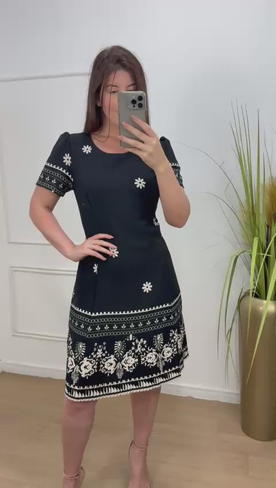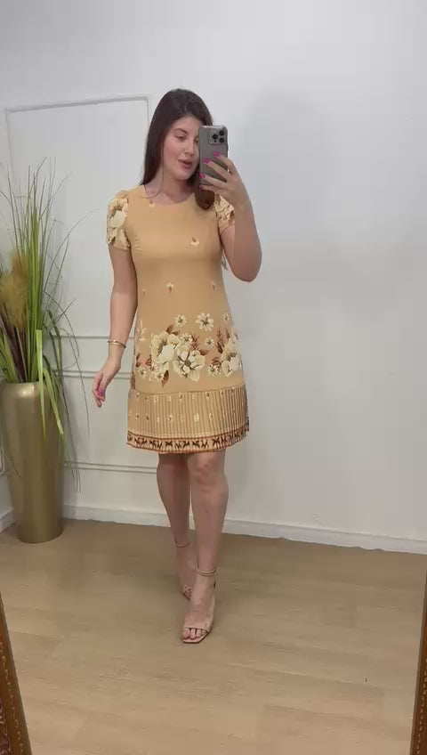 Vestido em crepe alfaiataria forrado zíper nas costas, babado plissado.