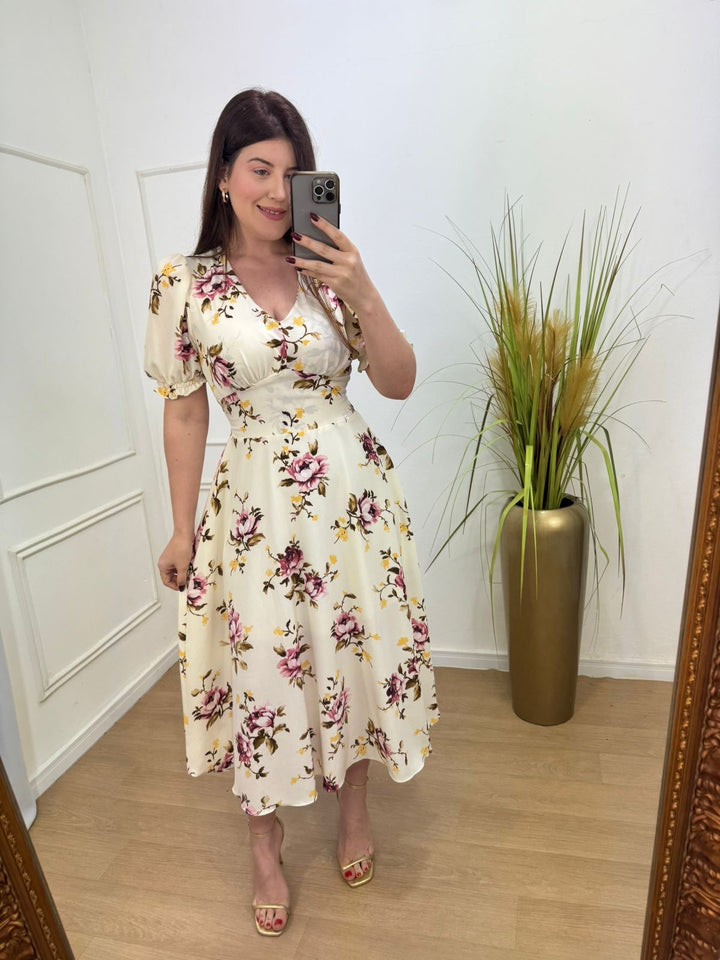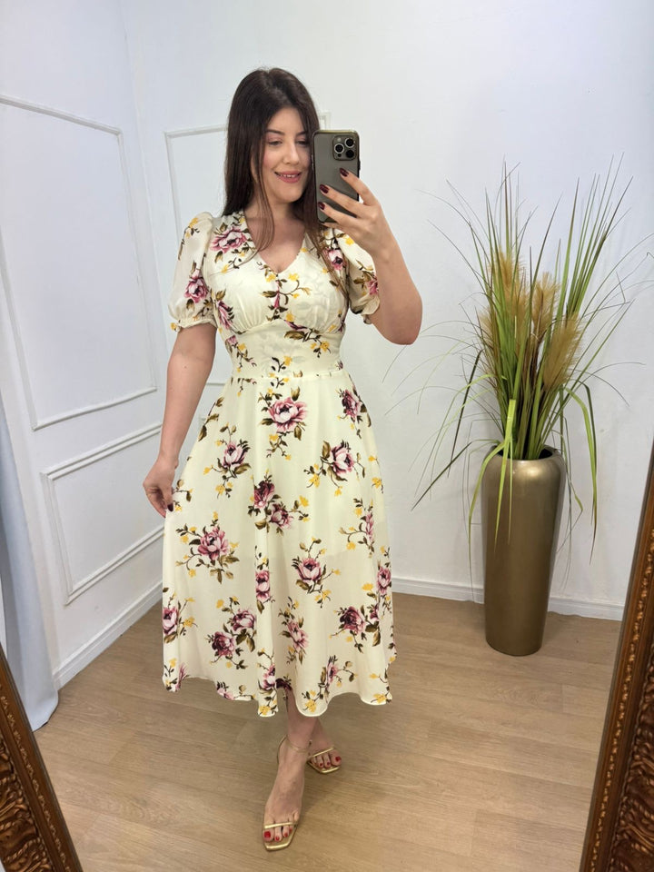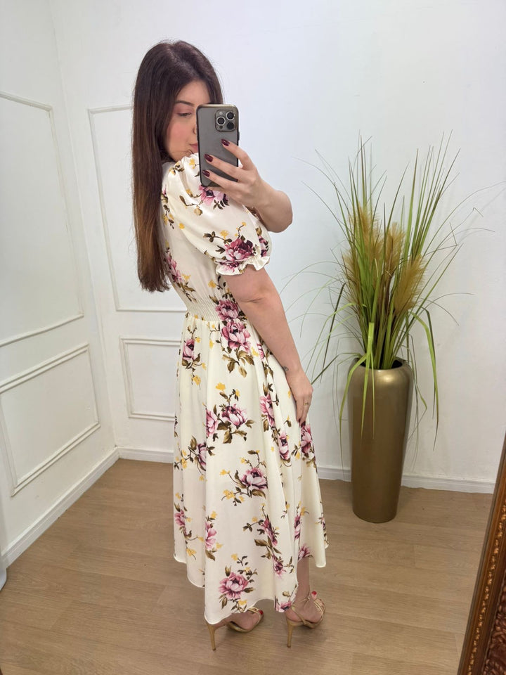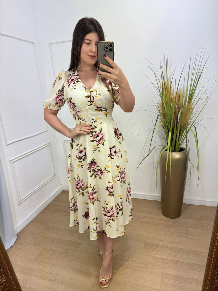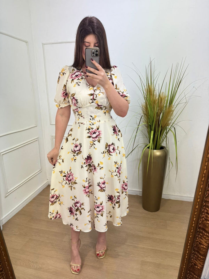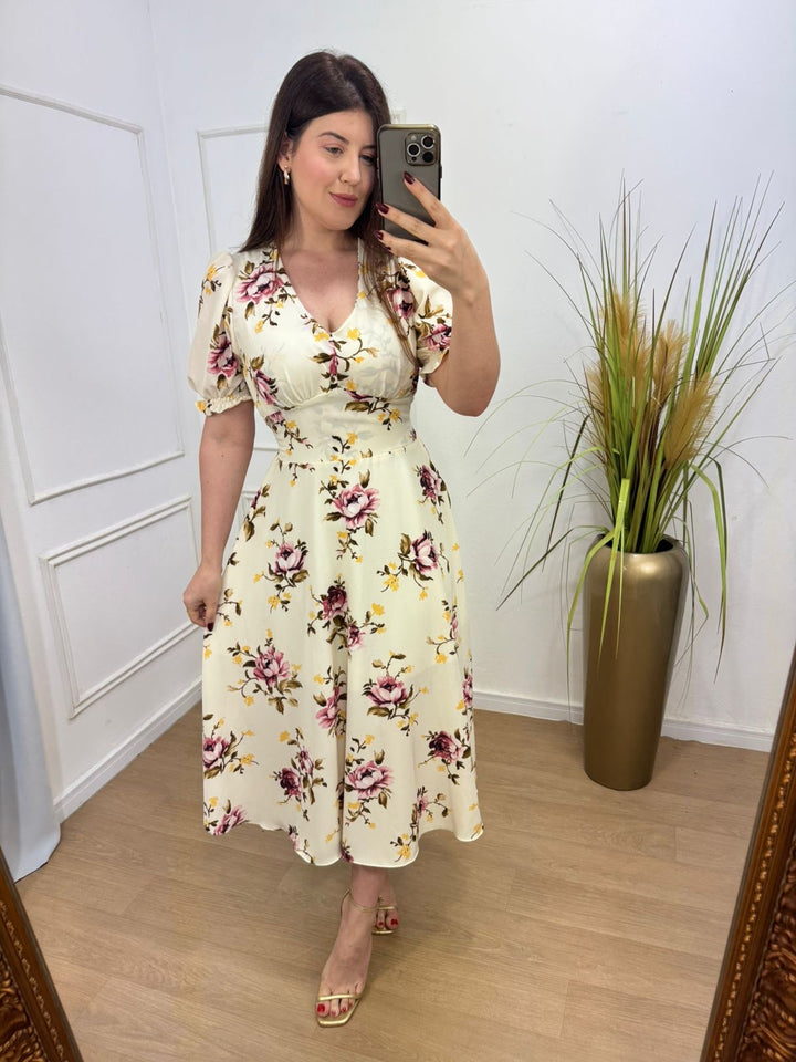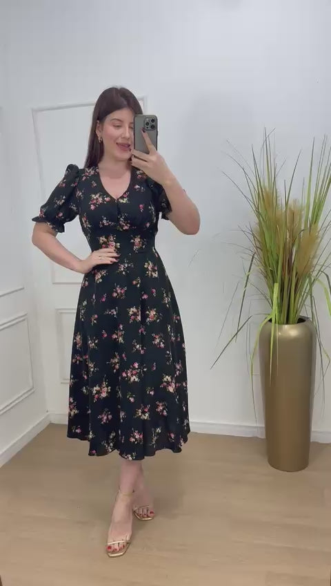 Descrição: vestido no crepe alfaitaria forrado, lastex nas cintura, modelagem gode, fluido.