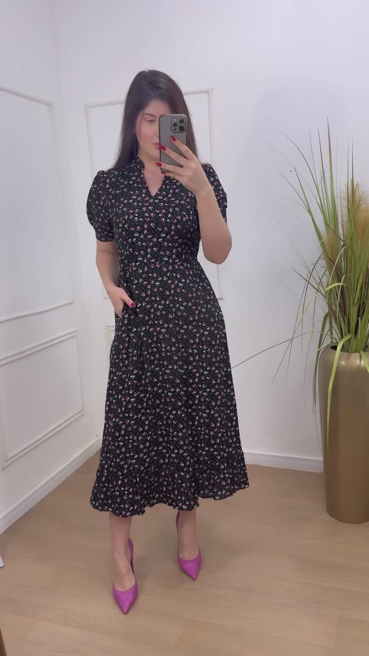 vestido Gisele no viscolinho premium forrado possui bolsos