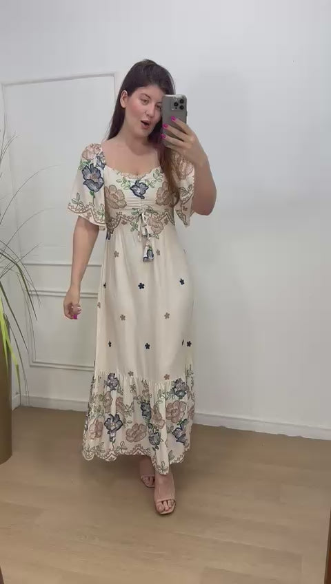 M: 96cm a 102cm de busto, 76cm a 80cm de cintura, 129cm de comprimento. Veste 40