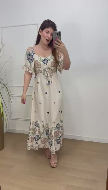 G: 102cm a 105 de busto, 84cm a 88cm de cintura, 131cm de comprimento. Veste 42/44
