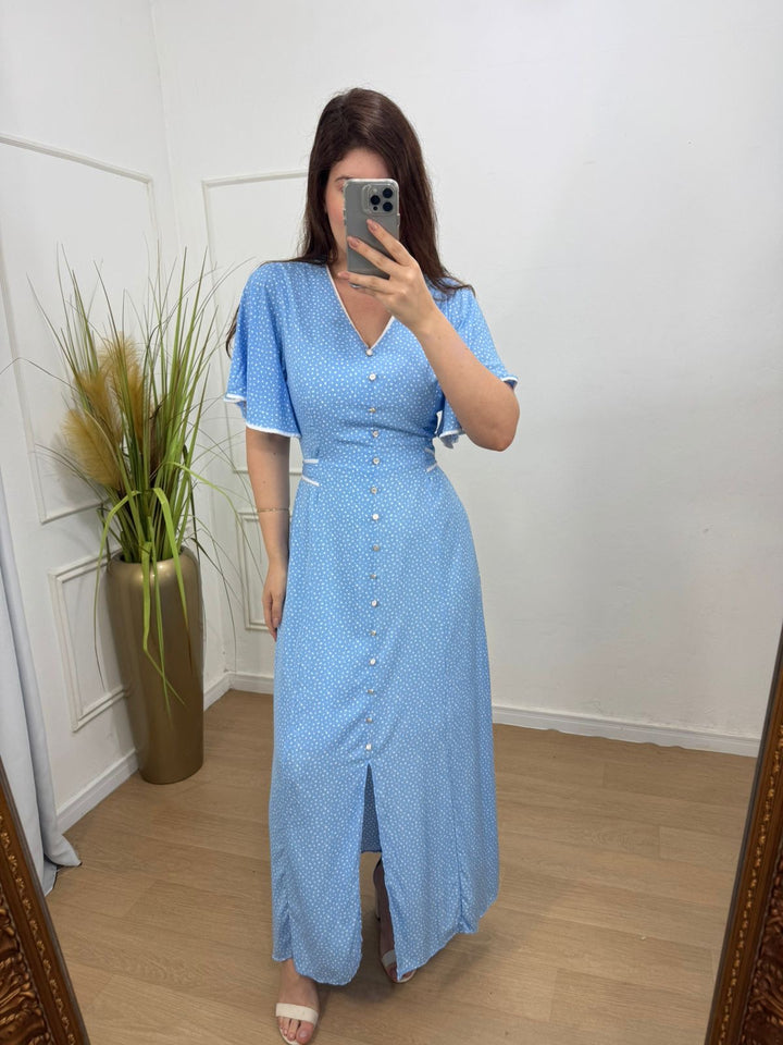 Modelo inspirado no verão europeu, tendência pra nossa estação o vestido Nina é produzido no tecido viscolinho premium forrado botões em madre pérola, possui faixa , lastex nas costas.
