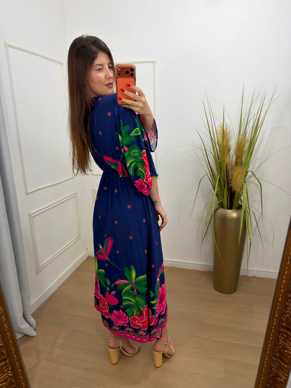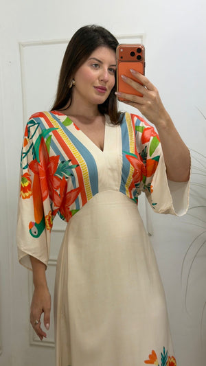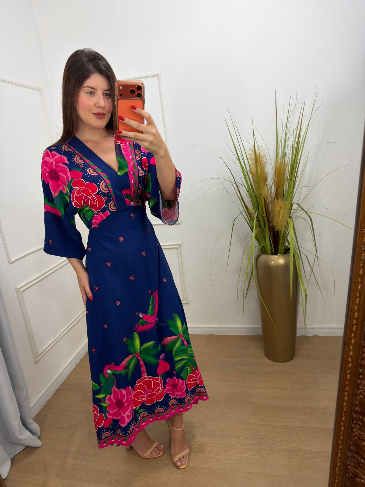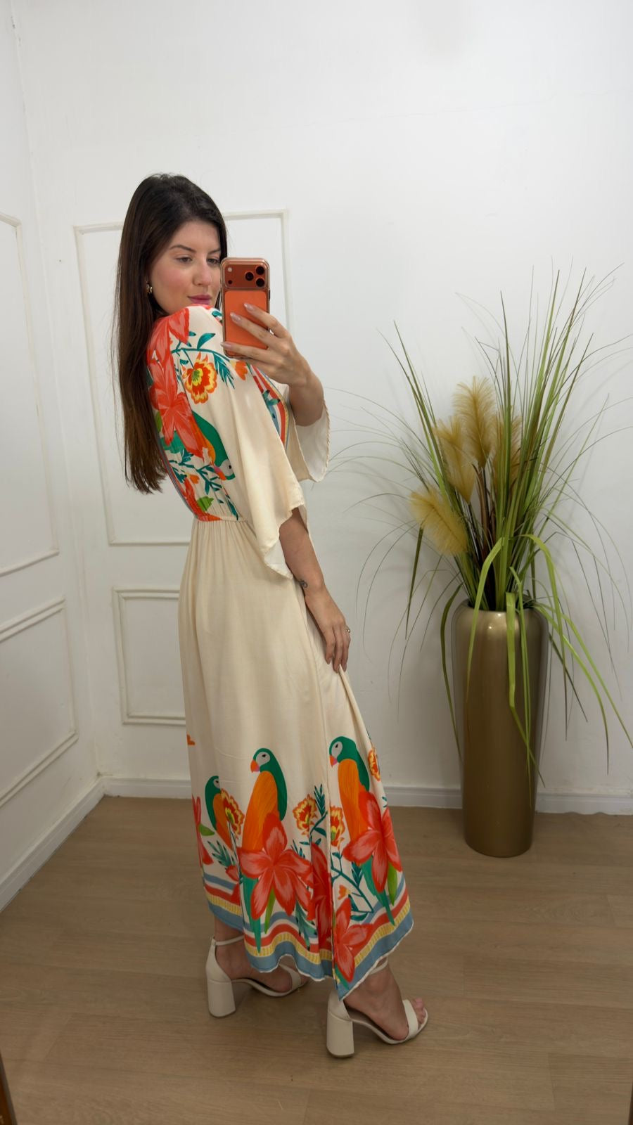 Vestido no viscolinho elástico na parte das costas, manga ampla , não possui forro.