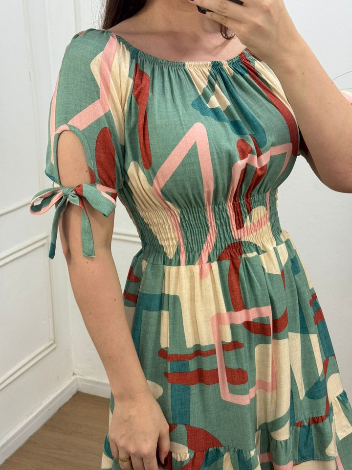 Vestido no viscolinho premium forrado elástico na cintura comprimento 93 cm modelo usa 40 e tem 1,75