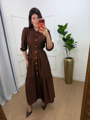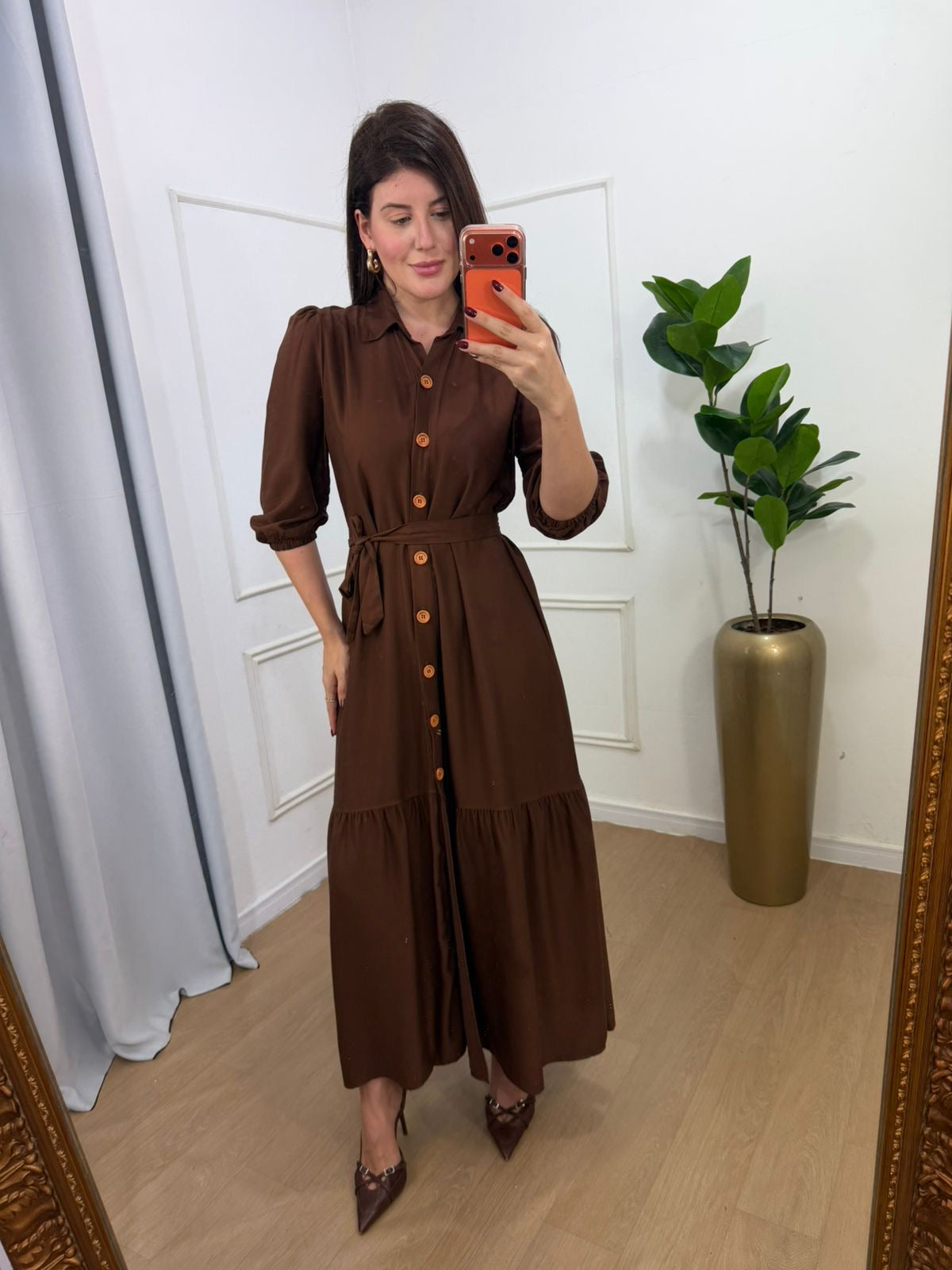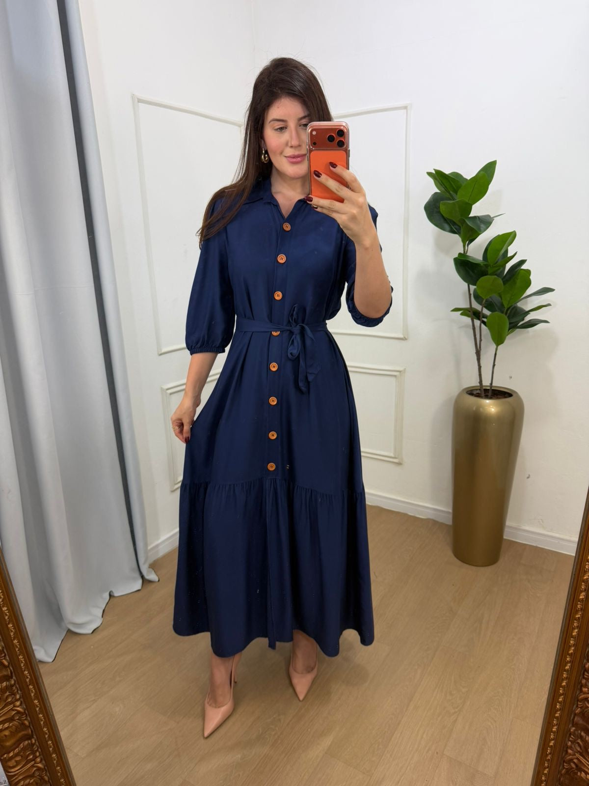 Vestido na viscosarja todo em botões acompanha faixa, não possui forro pois tecido não é transparente.