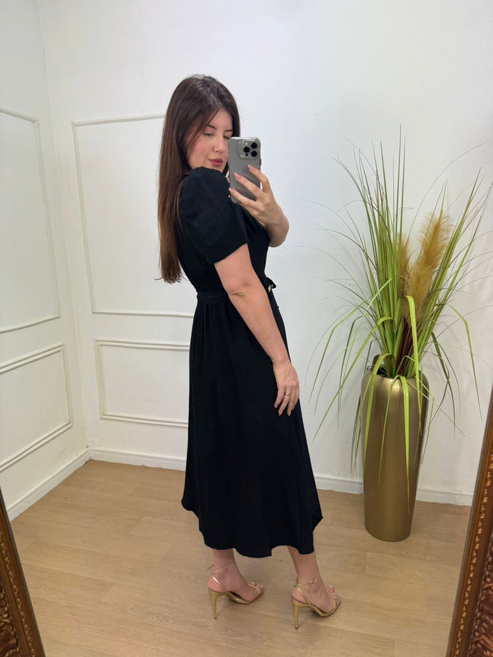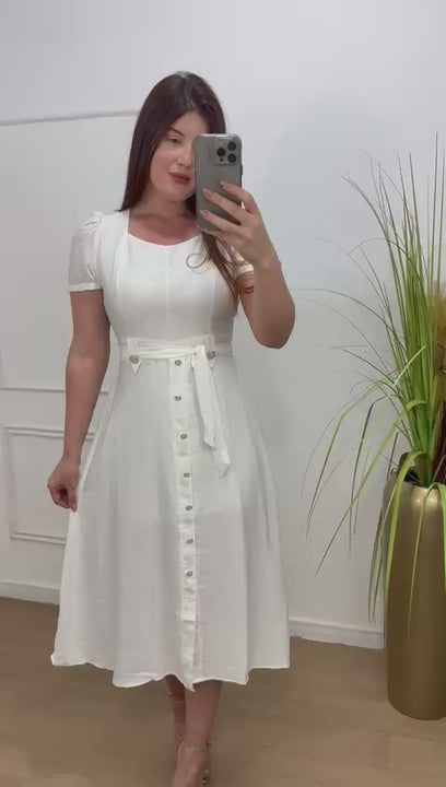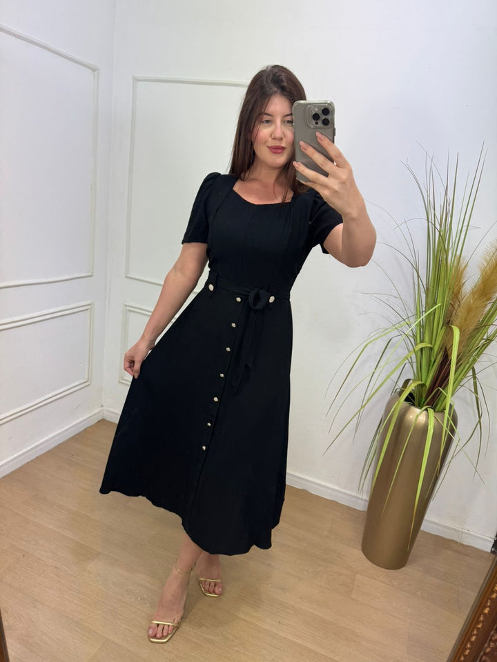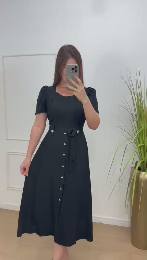 Vestido na alfaiataria sensorial crepe , possui forro , detalhes em botões, faixa , elástico nas costas.
